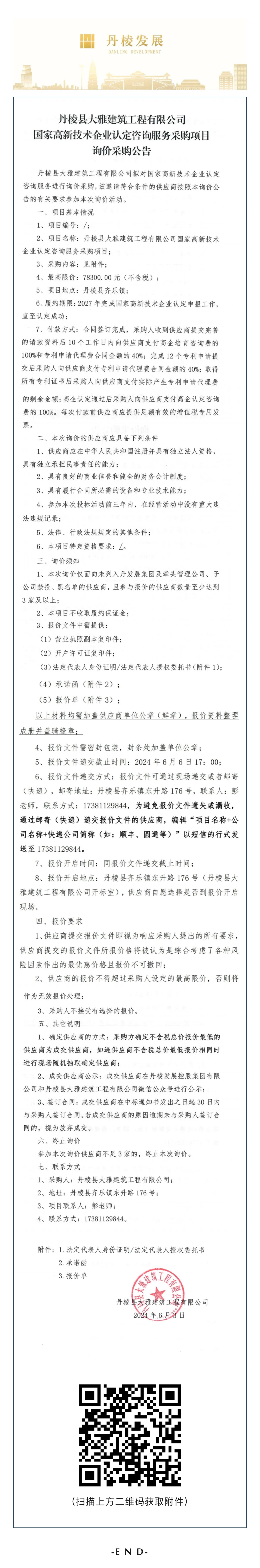 丹棱縣大雅建筑工程有限公司國家高新技術(shù)企業(yè)認(rèn)定咨詢服務(wù)采購項(xiàng)目詢價(jià)采購公告