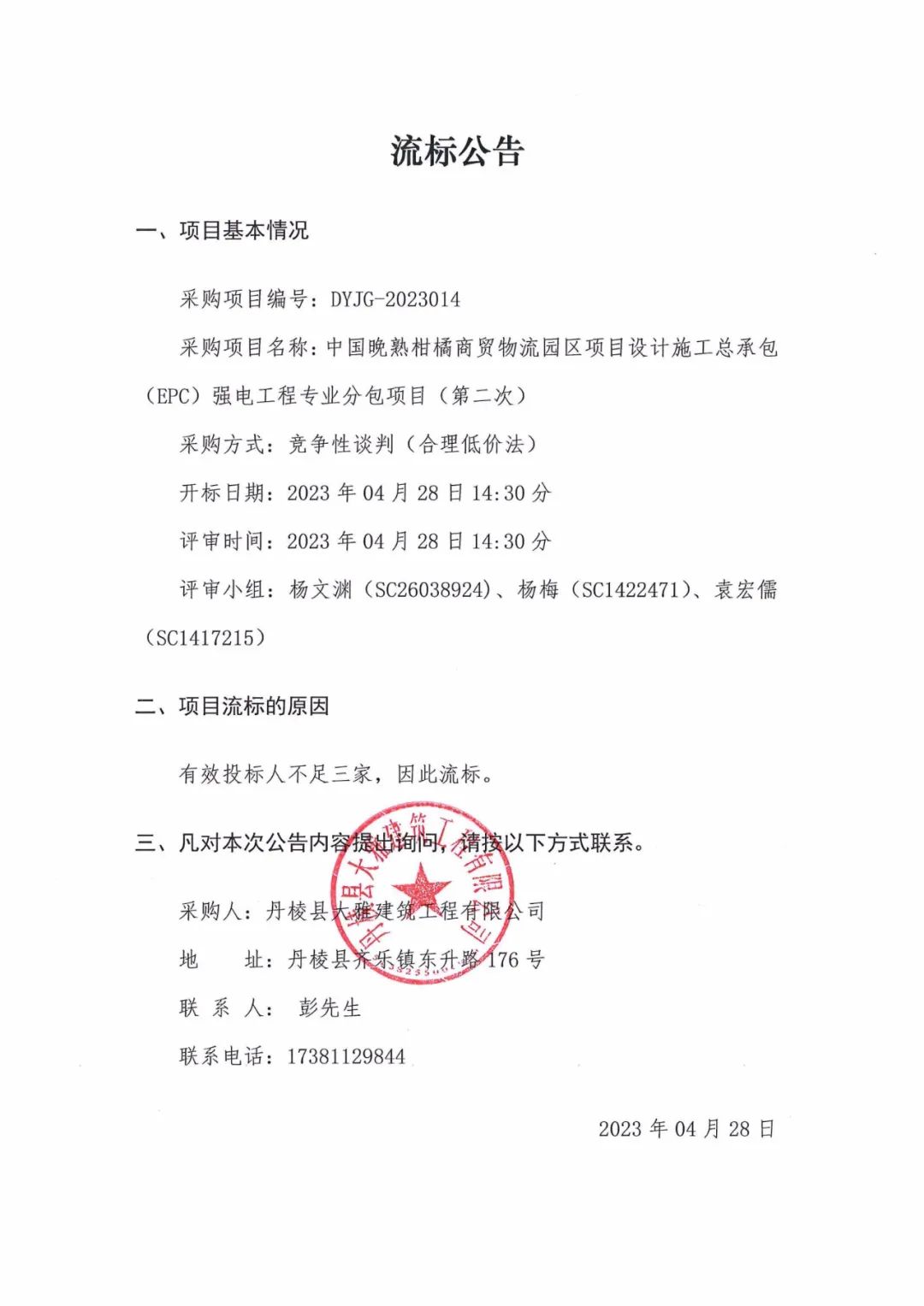 中國(guó)晚熟柑橘商貿(mào)物流園區(qū)項(xiàng)目設(shè)計(jì)施工總承包(EPC)強(qiáng)電工程專(zhuān)業(yè)分包項(xiàng)目(第二次)流標(biāo)公告
