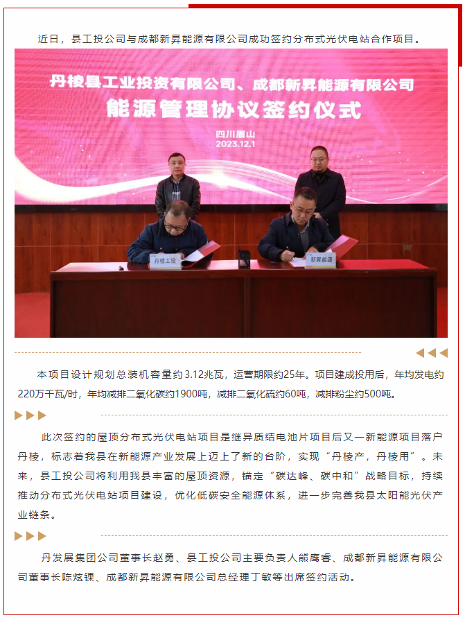 【縣工投公司】分布式光伏電站合作項(xiàng)目成功簽約